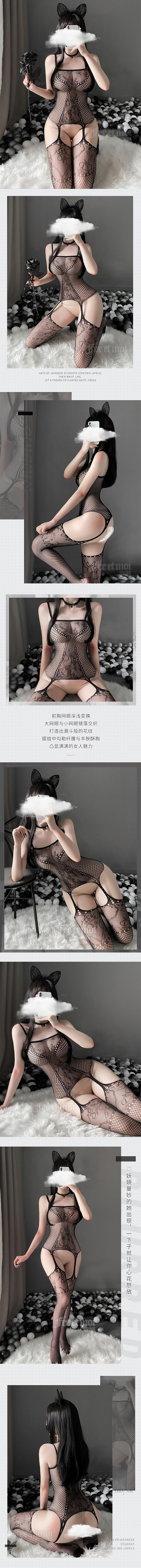· 商品名稱:吊帶網眼緹花開襠連身貓裝