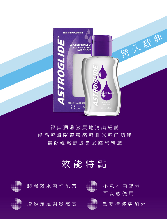 品名 :ASTROGLIDE 艾詩萊 親密關係保水最愛潤滑液 - 持久經典 74ml