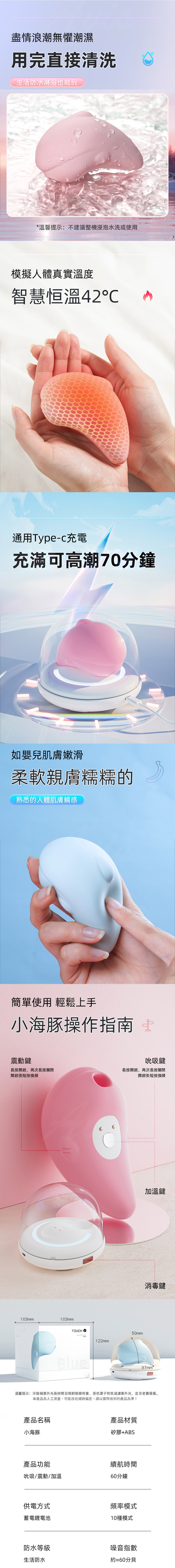 1.加溫升級-全新加溫功能,提供42度人體體溫模擬,暖心親膚