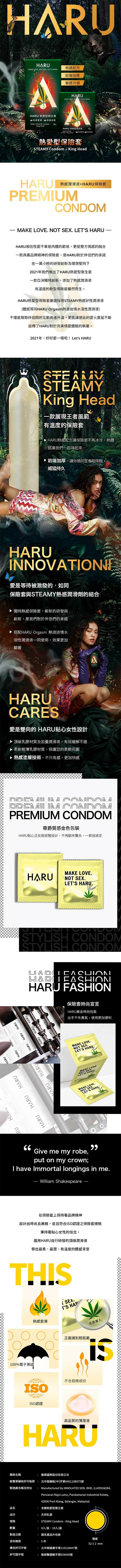 規格:含春熱愛型衛生套 STEAMY Condom-King Head