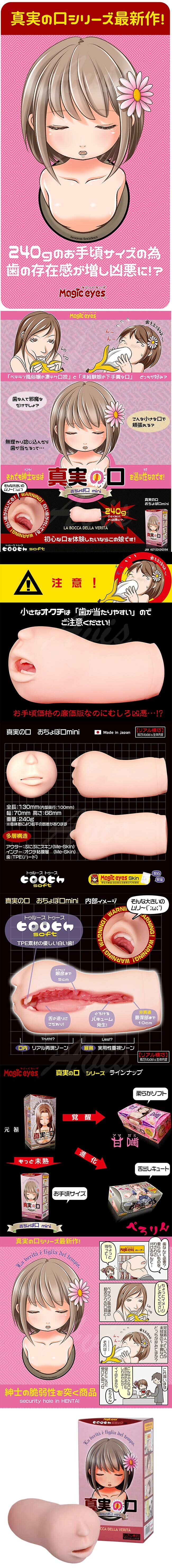 『Magic eyes|真實之口 櫻桃小口 mini 飛機杯』專為喜愛小口的你而設,真實之口的櫻桃小口mini新登場!內部長僅100mm的短小緊窄型,尺寸正恰到好處。內附仿真牙齒結構,採用TPE素材所製,忠實呈現女孩首次為你口交時的拙劣及溫柔!舌頭則與前作一樣拘泥於真實的造型,中段部分更設有仿真吊鐘位置,叫人不忍讓她為你鬆口!