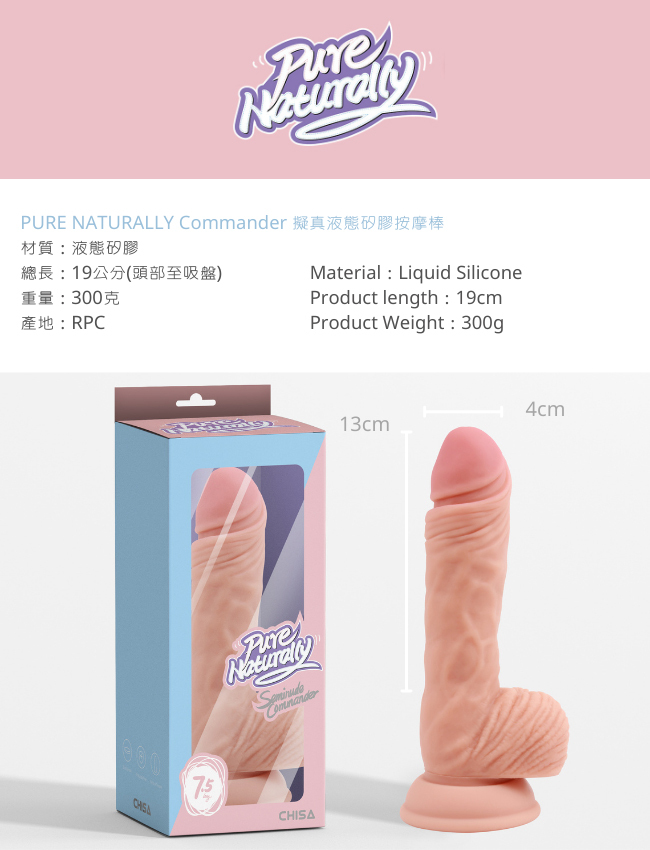 Pure Naturally Commander|液態矽膠擬真按摩棒 L13/W4cm
