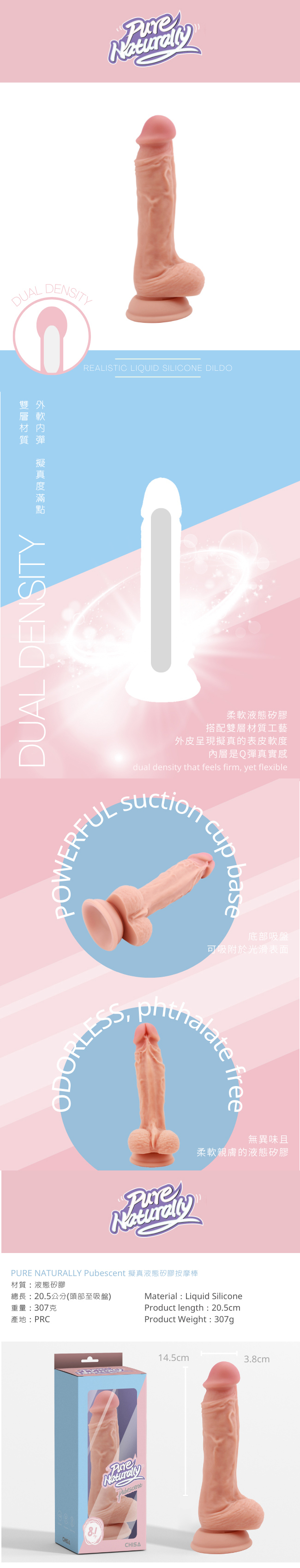 Pure Naturally Pubescent|液態矽膠擬真按摩棒 L14.5/W3.8cm