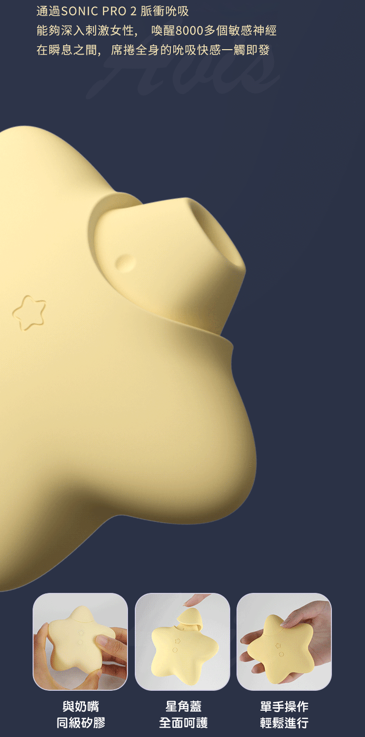 SVAKOM的桃桃星,和一般外觀“直接”侵入式的仿生商品不同。桃桃星採用高顏值的可愛星星造型,與其說是情趣小用品,不如說是情趣藝術品更為貼切,這也讓人在心理上更容易接納這個小玩具。