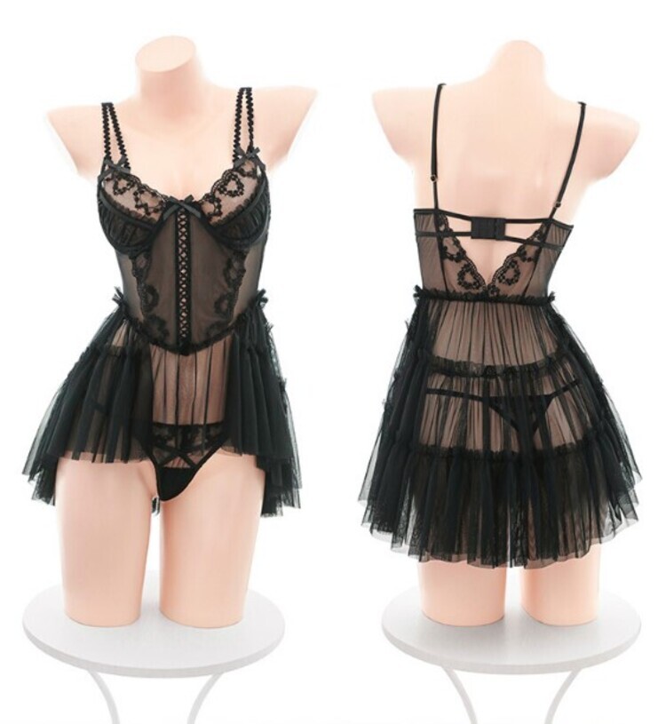 · 商品名稱:初戀記憶蕾絲花邊性感睡衣 黑