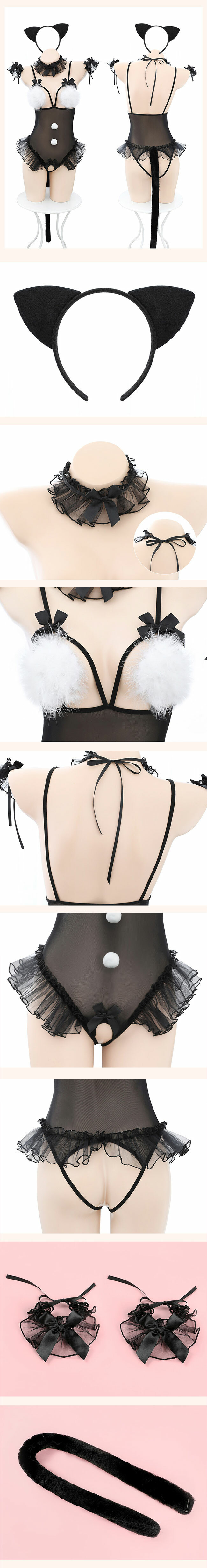 · 商品名稱:可愛貓咪半露乳開襠貓女服