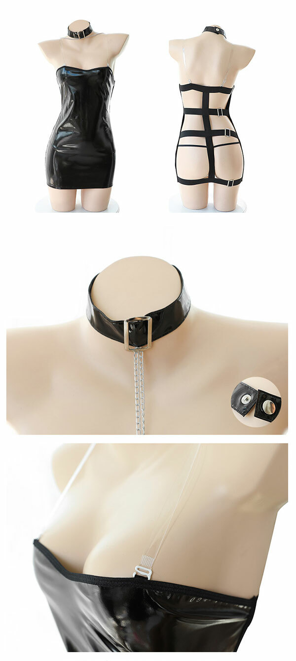 · 商品內容:頸圈鍊條手環+透明肩帶+連身裙+丁字褲