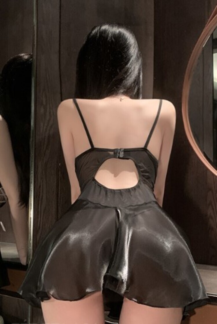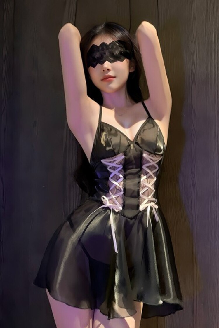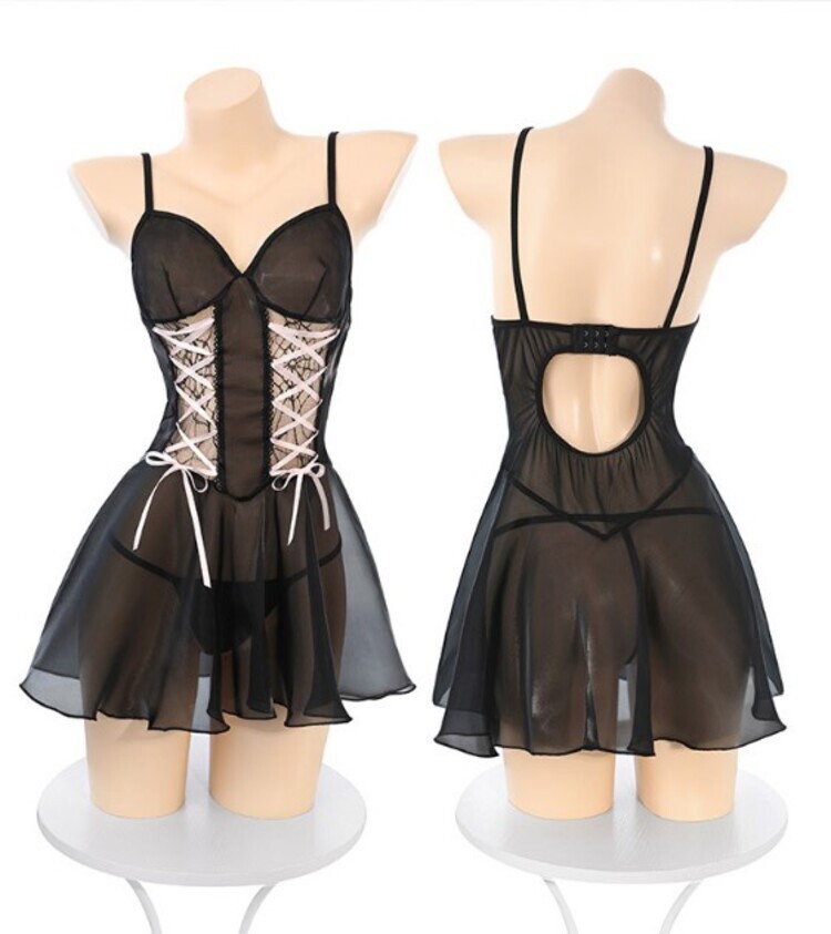 · 商品名稱:甜美綁帶收腰花瓣裙擺睡衣 黑