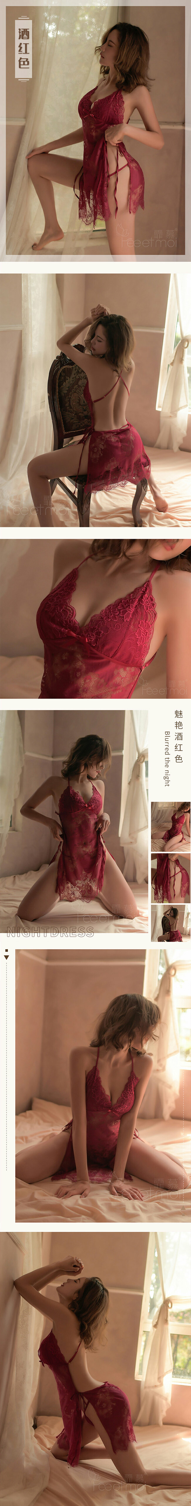 · 商品名稱:蕾絲露背側開岔性感睡衣